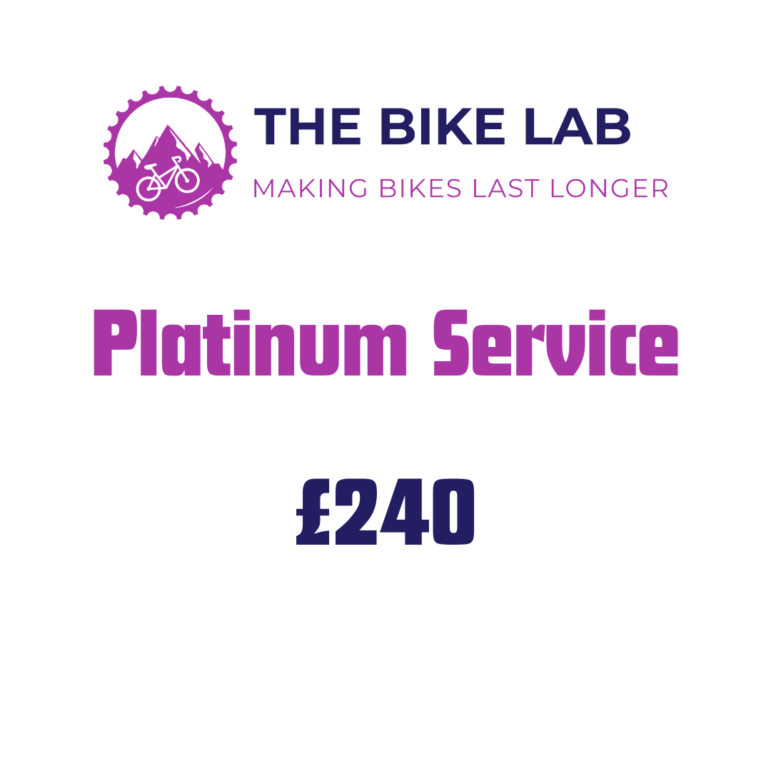 A gold standard bike service with a complete strip-down, bearing service, wheel truing, and full adjustment throughout.